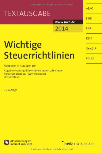 Wichtige Steuerrichtlinien: Richtlinien in Auszügen zur Abgabenordnung, Einkommensteuer, Lohnsteuer, Körperschaftsteuer, Gewerbesteuer, Umsatzsteuer. 2014-05-19 pdf complete telechargement